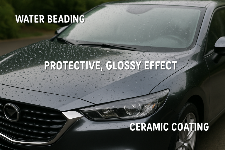 Ceramic or nano-ceramic car coating is a liquid polymer applied to a vehicle’s exterior surfaces. It chemically bonds with the factory paint, creating a hydrophobic (water-repellent) protective layer. Compared to traditional waxes and sealants, ceramic coatings offer far longer-lasting protection, with some professional-grade coatings lasting several years. Their resilience to environmental stressors sets ceramic coatings apart from typical detailing solutions.